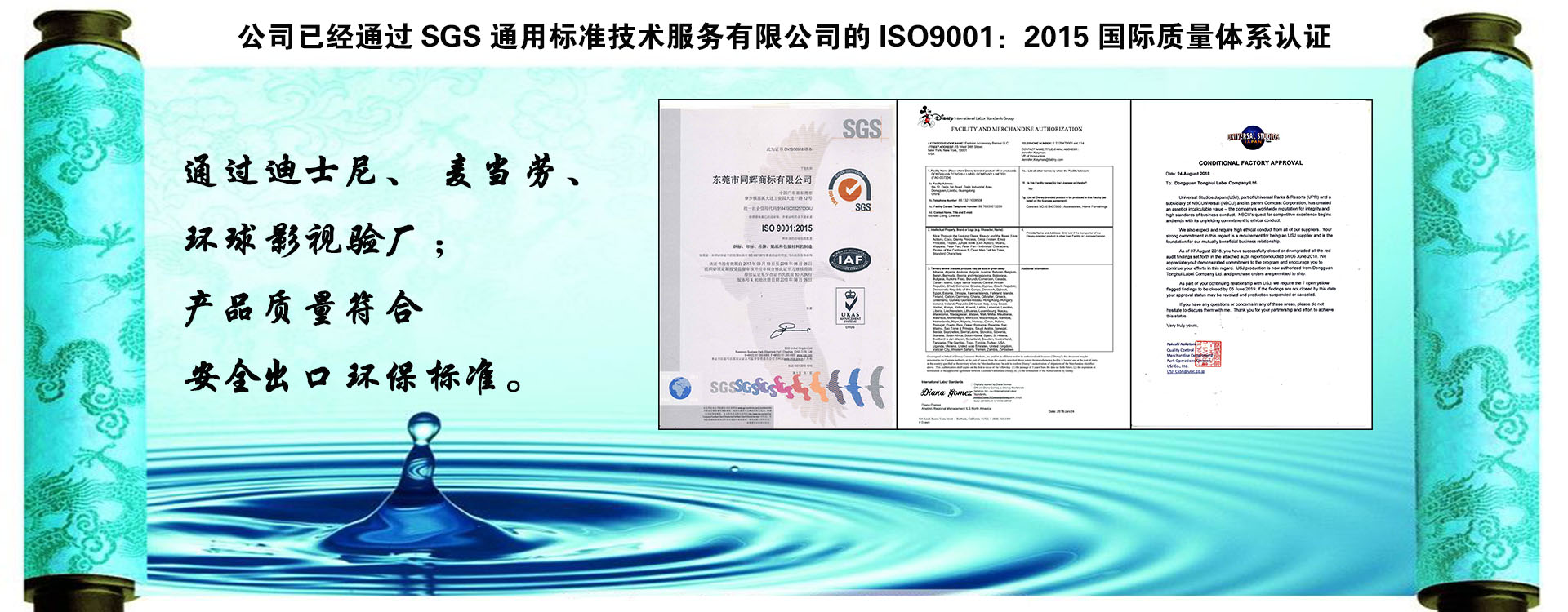 東莞市同輝商標輔料及包裝印刷有限公司是一家專業(yè)從事商標制造、包裝印刷的企業(yè),主營生產(chǎn)和銷售:各類織嘜商標,織章,印刷商標,印嘜,標簽印刷,不干膠商標,絲印商標,熱轉印標,無感商標,燙嘜,皮牌商標,電壓商標、商標帶、繡花標,布貼標、皮貼標、商標吊牌,彩卡,折盒等廣泛用于各行各業(yè)。工廠經(jīng)過多年的發(fā)展與開拓,規(guī)模日益發(fā)展壯大。從設計制作、工程研發(fā)、生產(chǎn)制造、產(chǎn)后加工、品檢、物流配送、售后服務等一套完整的優(yōu)質服務體系,及優(yōu)秀的經(jīng)營管理團隊。已通過SGS ISO9001:2008(新版是2015版)國際質量體系認證,產(chǎn)品質量符合各國安全出口環(huán)保標準。承蒙國內(nèi)外客戶的大力支持,目前已有許多國際著名品牌定點授權我公司生產(chǎn),并是通過全球迪士尼FAMA認證驗廠,麥當勞驗廠,環(huán)球影視驗廠的供應商,是各行業(yè)值得信賴并具有實力的合作伙伴。